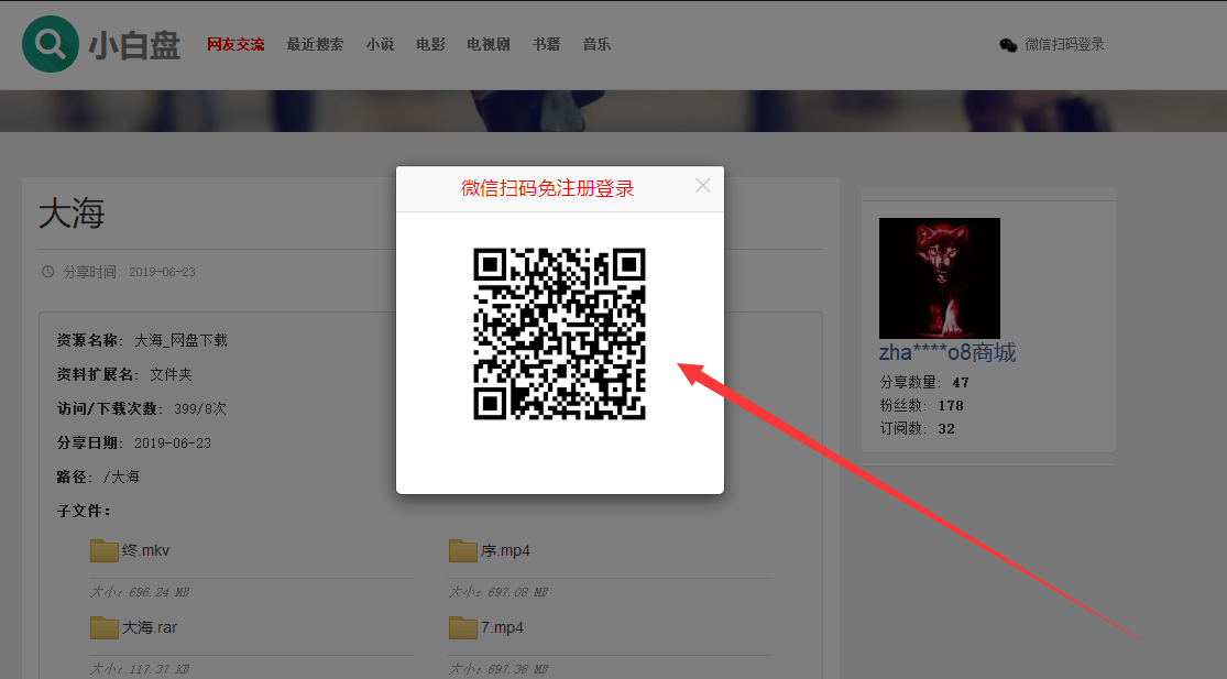 当我们找到需要的文件时想直达网盘地址小白盘切提示你需要扫码登录后才可以跳转,今天大海一段代码帮你搞定无需登录。